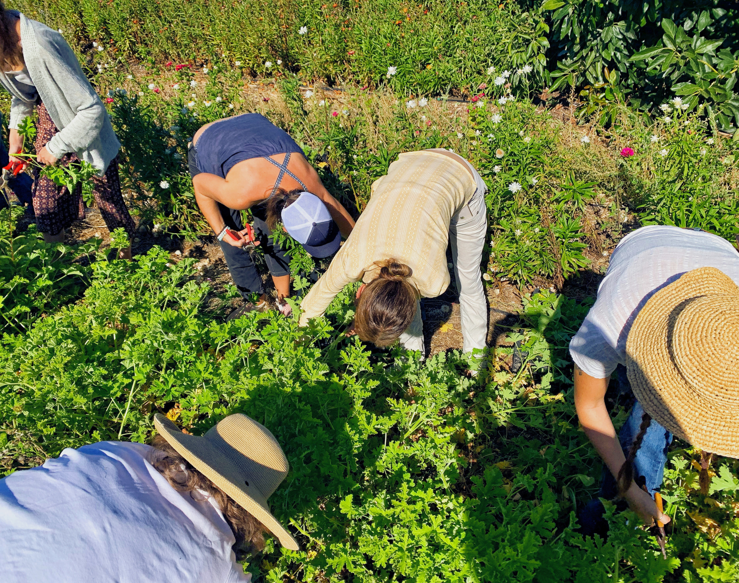 Tucked high above the beach town of Carpinteria, Mary Gonzalez and her partner Rob Peed preside over a two-acre organic flower and herb farm called Sweet Mountaintop Farms, a favorite among California bakers. Prized for their generous selection of fragrant herbs and photogenic flowers, Gonzalez and Peed are a mainstay at the local farmers’ markets, even offering personalized services such as workshops and private tutorials. When Gonzalez appears at a birthday party for Michaan’s daughter with large buckets of pastel flowers, guests gather around the table to make fresh floral crowns, wrapping the delicate flowers in braids of quiet ceremony while Michaan makes a chamomile syrup for the cake, sprinkling petals over the mascarpone frosting.