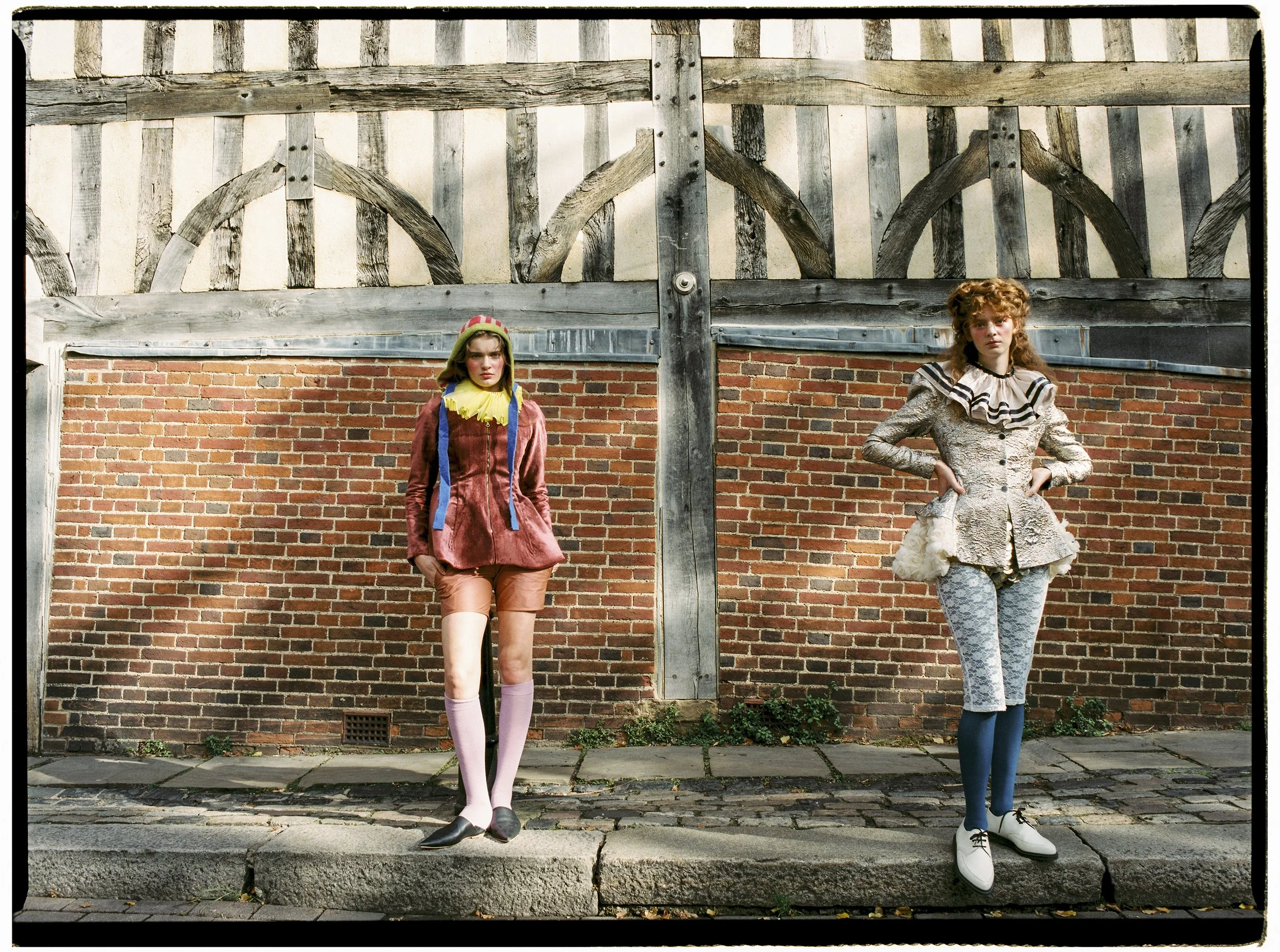 Isabella, jacket & shorts HECTOR MACLEAN, ruff KOSTUMKA, hat DAMSON MADDER at WORD STORE, socks FALKE, black leather Morrocan shoes ARTISAN STORIES