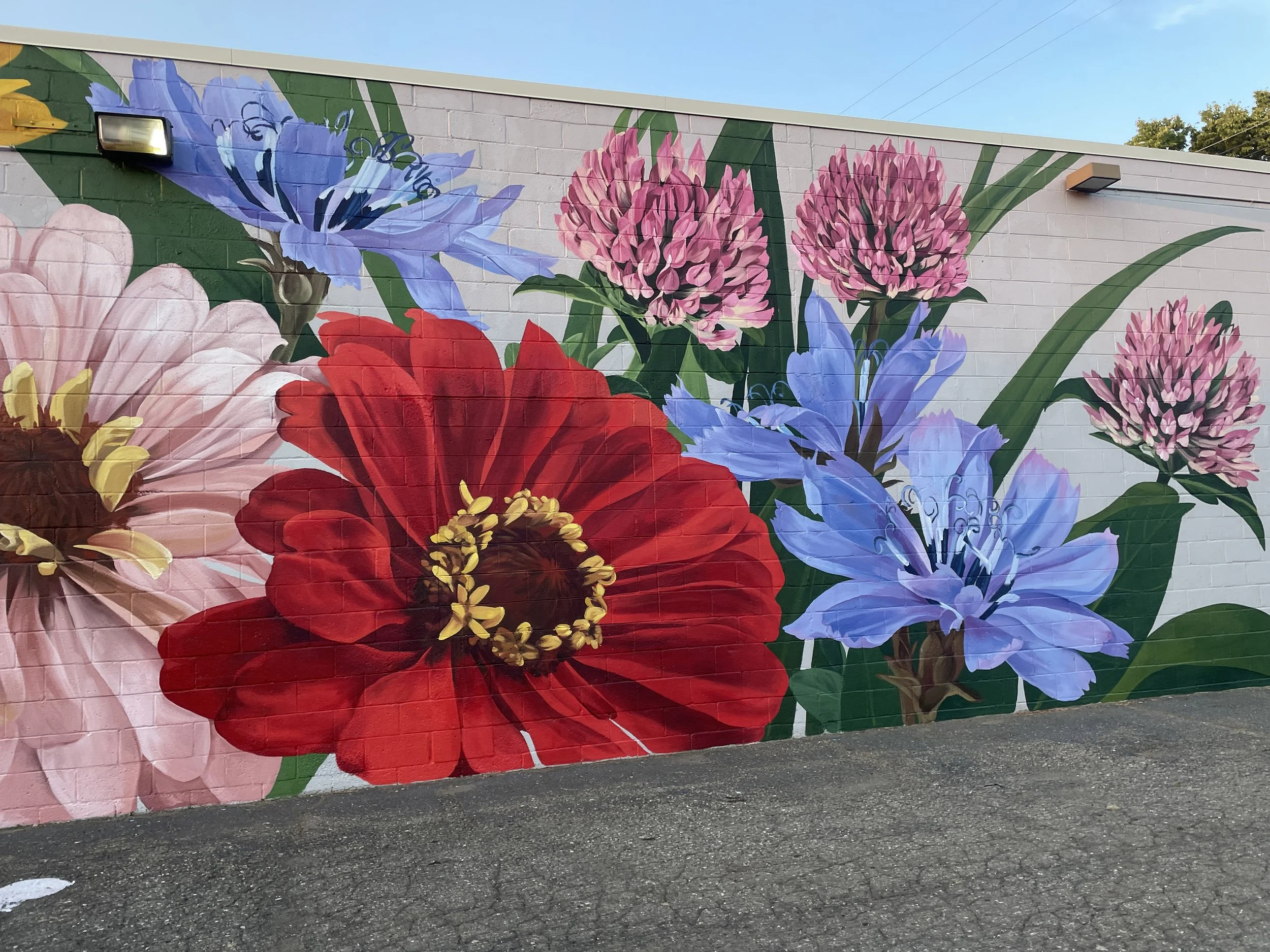 I try to consider the audience, and generally the purpose my art will serve there. If it’s a gallery or museum, the mural tends to be more site-specific; either taking notes from the other works being shown, or from gardens on the premises. When I paint murals for municipalities, I will paint native plants; wildflowers, and popular cultivars. I also try to incorporate suggestions from community members and stakeholders.
