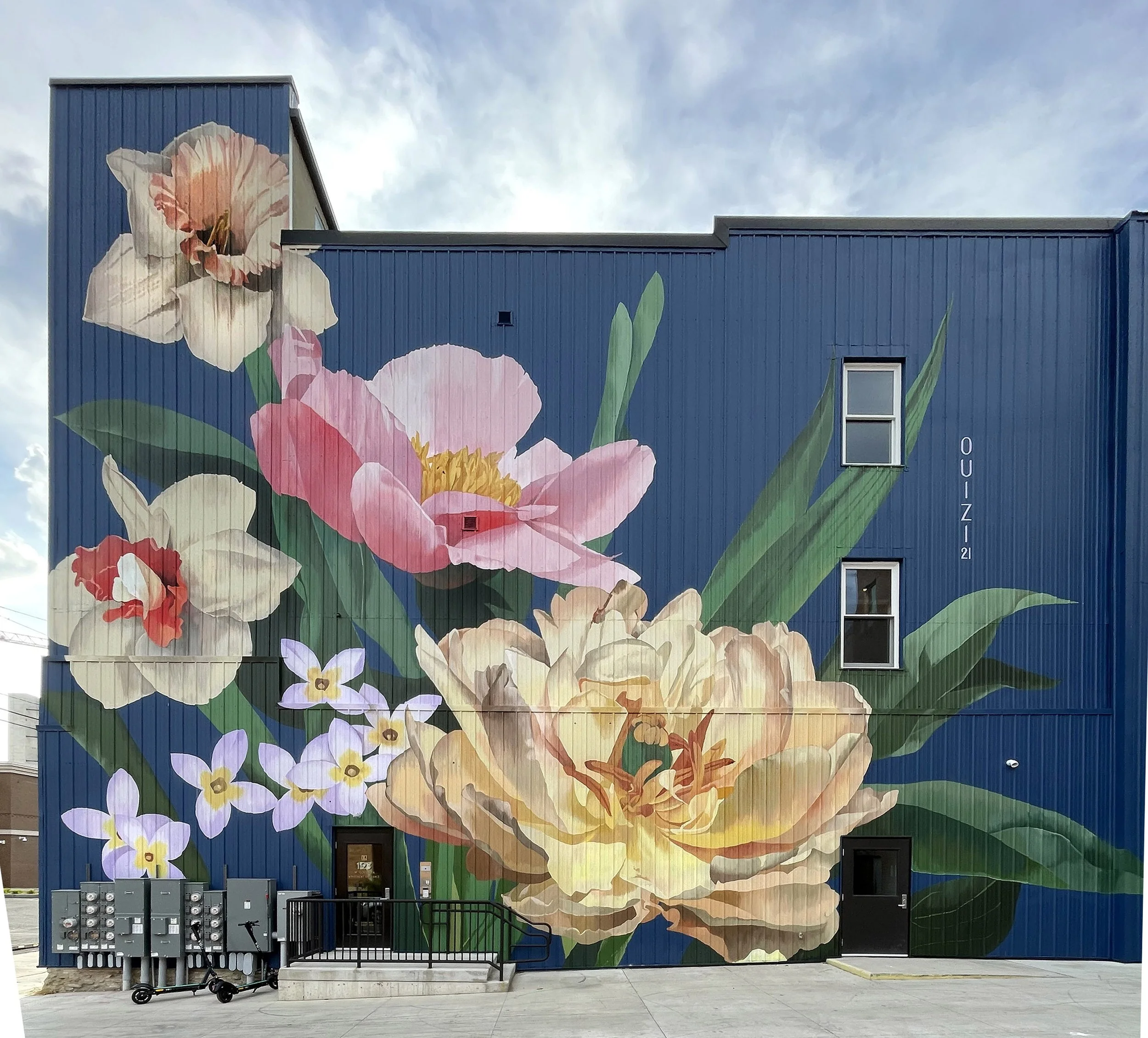Today, we're with artist Louise Jones, better known as Ouizi. Originally from Los Angeles and now based in Detroit, she creates stunning large-scale floral murals and vibrant paintings. As beautifully captured in the photographs by Anastasia Cheatham, her work is a celebration of nature. In this interview, we'll dive into her journey into mural art, her love for flowers, and how her studio work influences her public pieces.