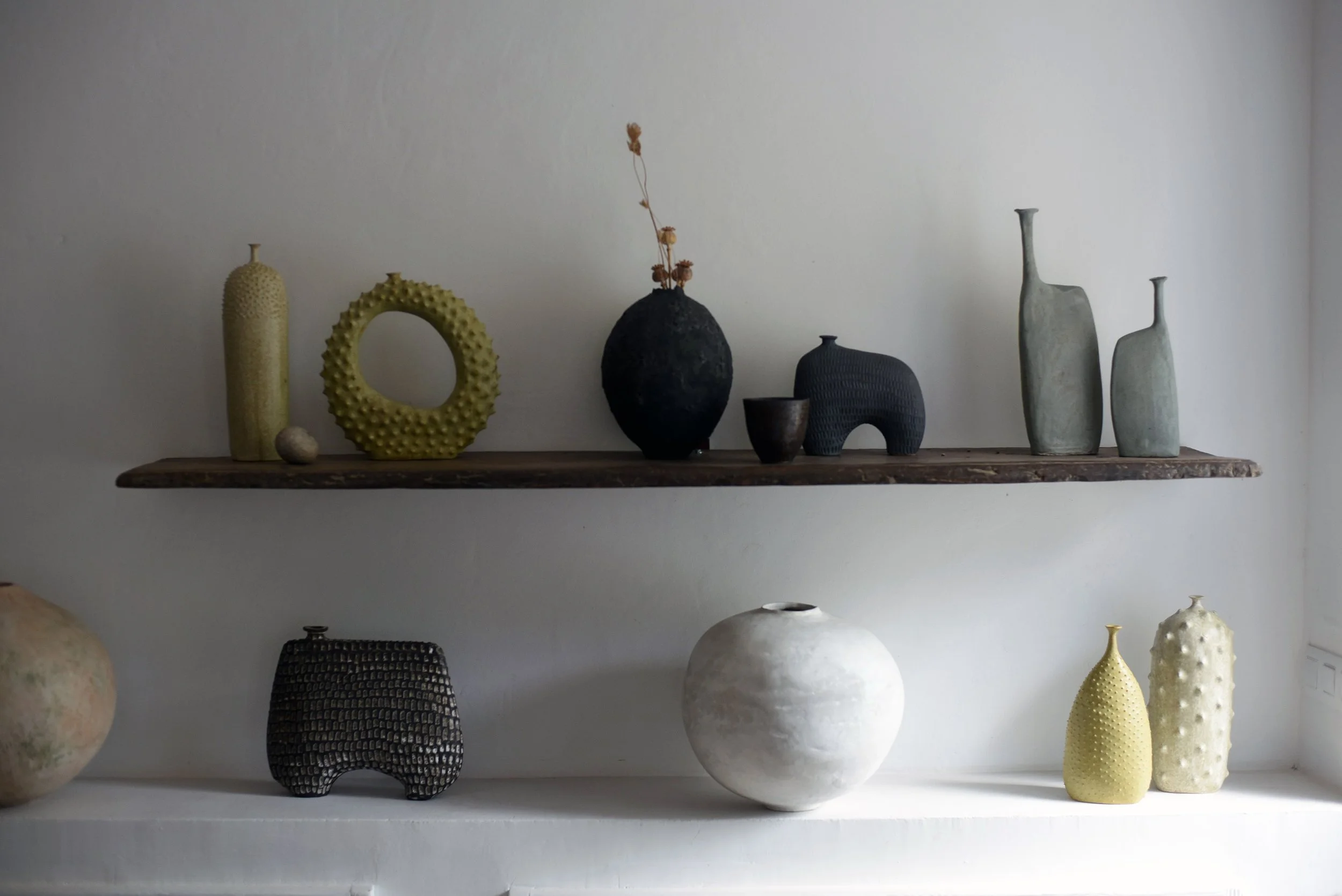 Our works are quite different but seem to have so much in common, I’ve tried placing other ceramic artists work in the gallery along with our pieces and for me they never seem to quite fit in or have the same energy as our work. I guess that’s it, it’s the energy of our work, it’s like the pieces are familiar to one another, they are family.